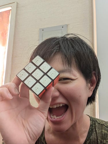 Ü enjoys learning and has great patience. Ü takes learning as a lifelong journey. Ü has taken many pauses and resumes for many different subjects. At least one pause was 30 year long. Take this photo on the right for example, Ü bought a Rubik's cube when she was in elementary school. Ü messed it up and couldn't solve it. The unsolved cube was in one drawer in her piano studio at home in Taiwan. In one summer 30 years later, Ü got an unsolved Rubik's cube from her nephew in VA and learned to solve it with the help with Internet. The first thing after visiting Taiwan in 2025, Ü went to that specific drawer in her piano studio at home, retrieved the unsolved cube, and put a closure on this 30 year old puzzle. It was quite satisfying. Ü works for perfection and embraces imperfection. Ü enjoys collecting data and letting the data peacefully sit in her mind. When the conditions are right, a pattern shows up to connect lots of seemingly random pieces. So, if you have some exciting ideas to shed more light on humanity or a good cause to support, please elaborate.